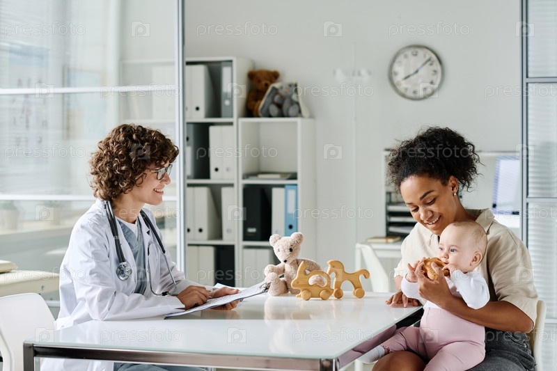 Женщина, посещающая врача со своим ребенком