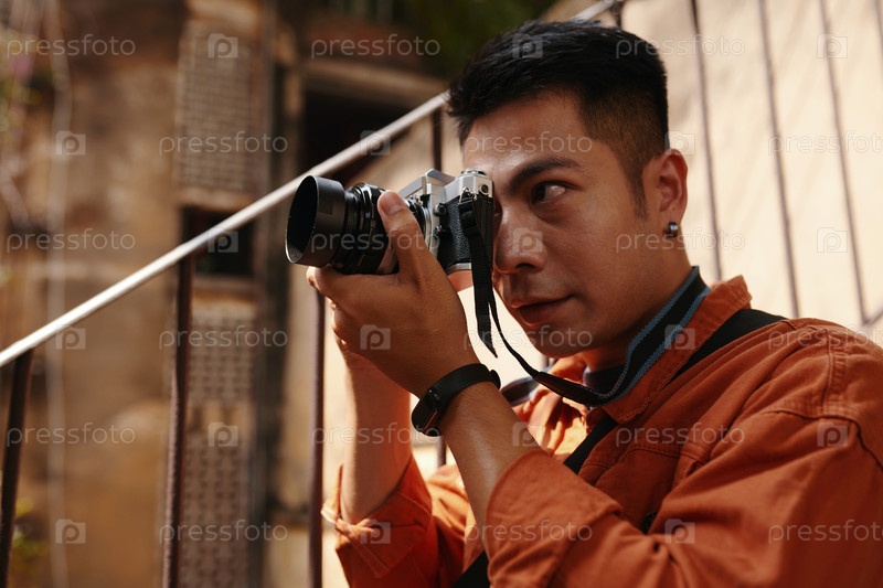 Фокусированный профессиональный фотограф