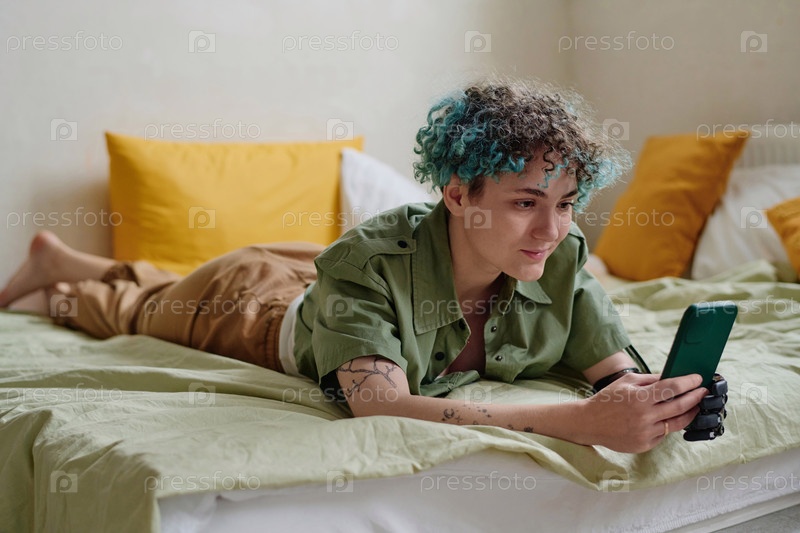 Девушка с бионической рукой, которая отправляет текстовые сообщения