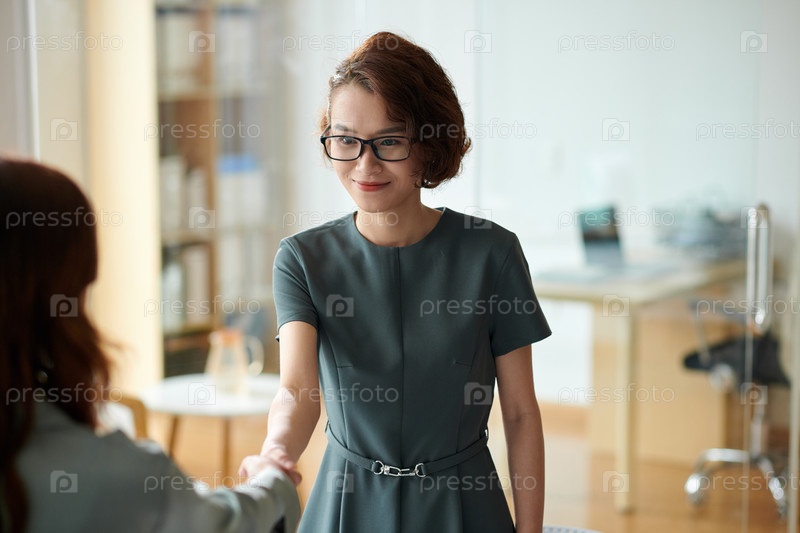 Улыбающийся менеджер приветствует сотрудника