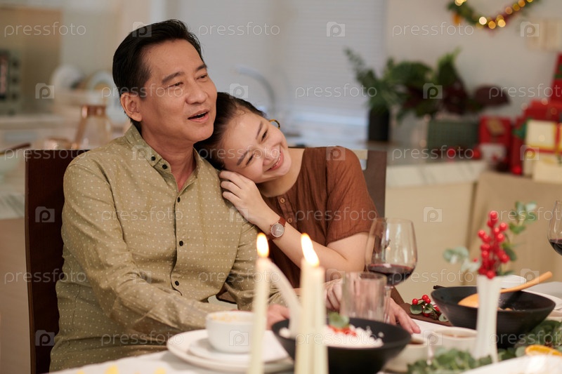 Женщина, отдыхающая головой на плече мужа
