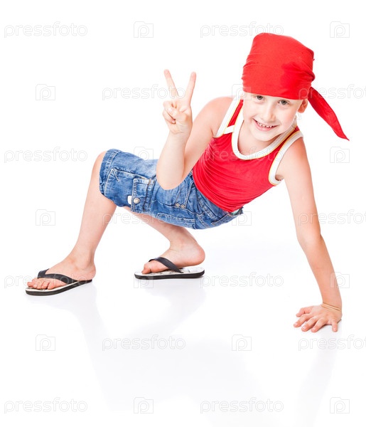 Танцующий маленький мальчик на белом фоне