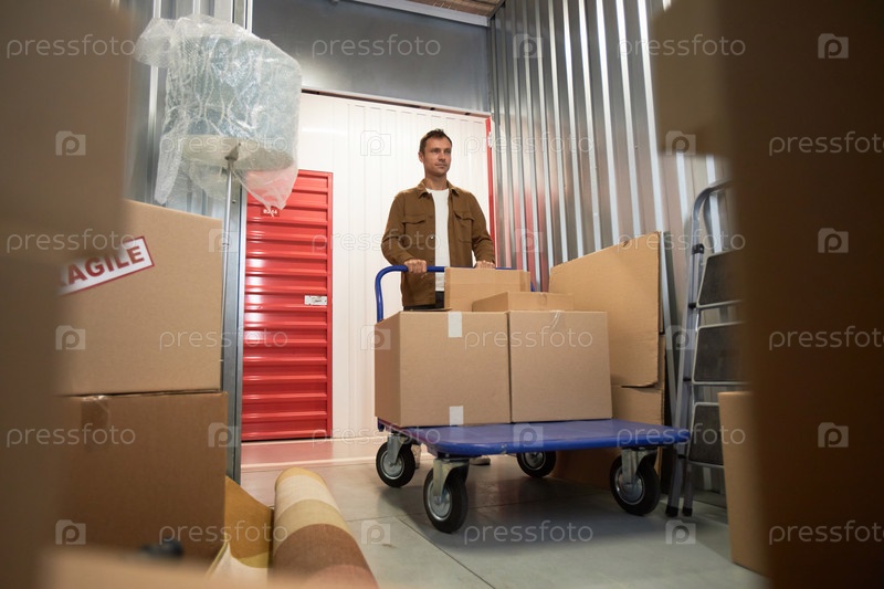Клиент толкает корзину с принадлежностями