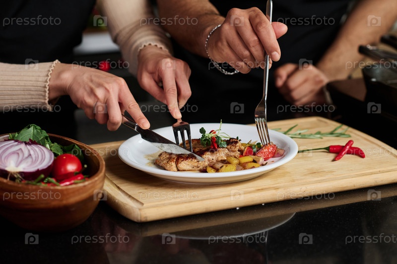 Мужчина и женщина обедают на кухне