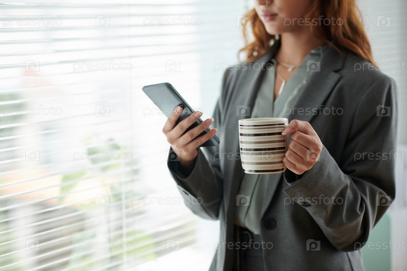 Деловая женщина проверяет уведомления на смартфоне