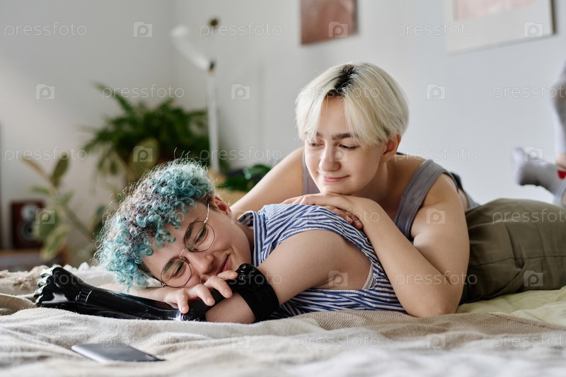 Красивая лесбийская пара отдыхает дома