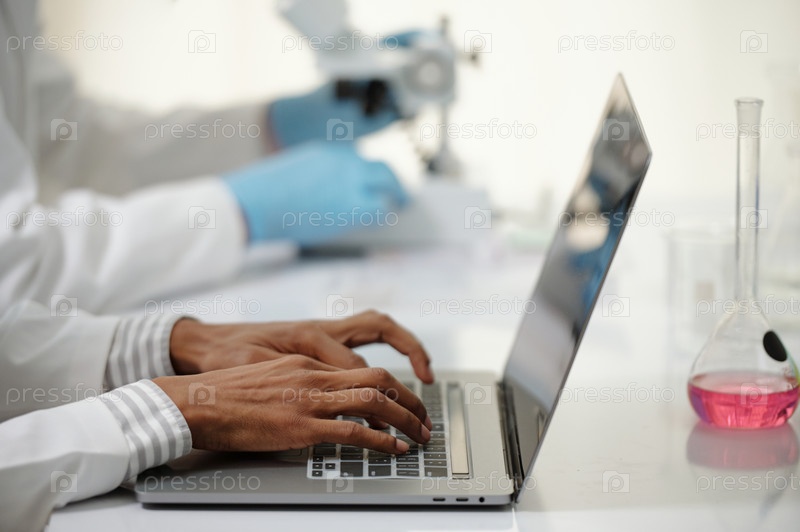 Исследователь заполняет форму на ноутбуке