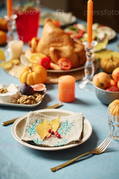 Тарелка с украшением на столе Дня благодарения