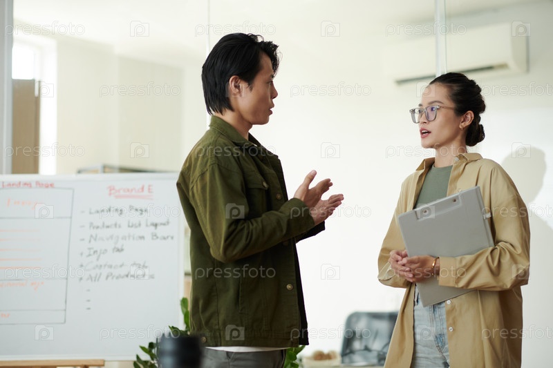 Лидер команды разговаривает с разработчиком