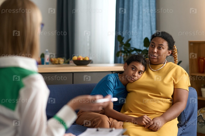 Социальный работник разговаривает с приемным родителем