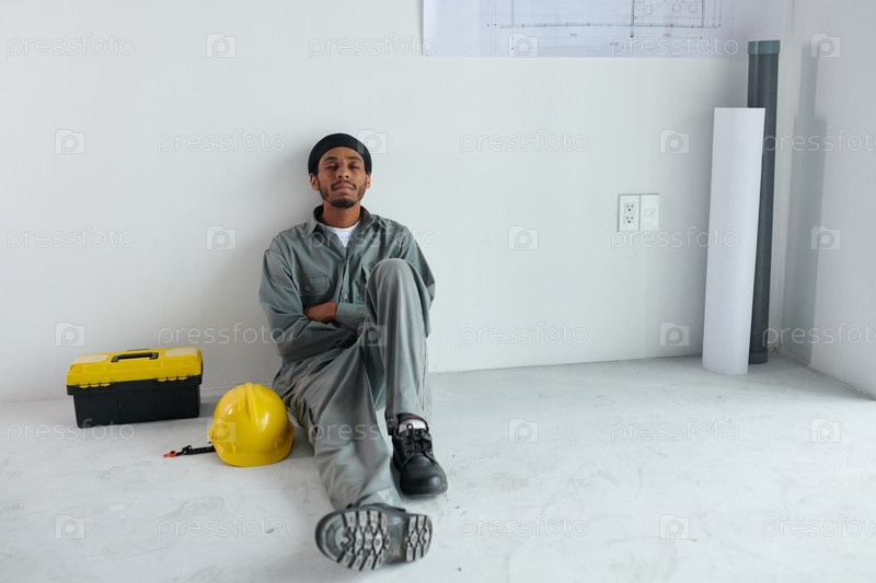 Усталый строитель, отдыхающий