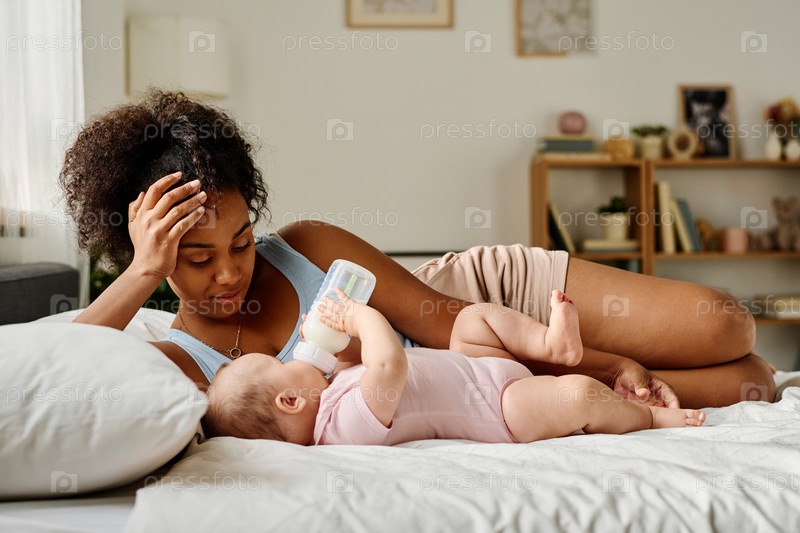 Мать кормит своего ребенка перед сном