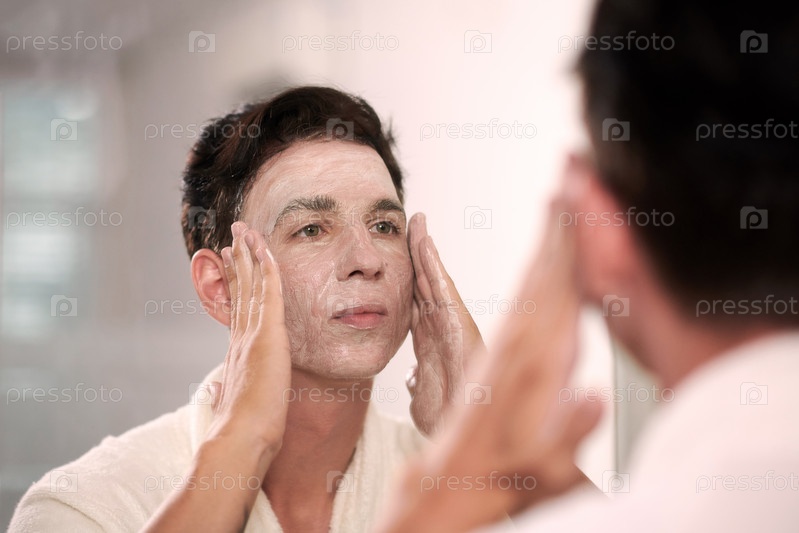 Молодой человек моет лицо