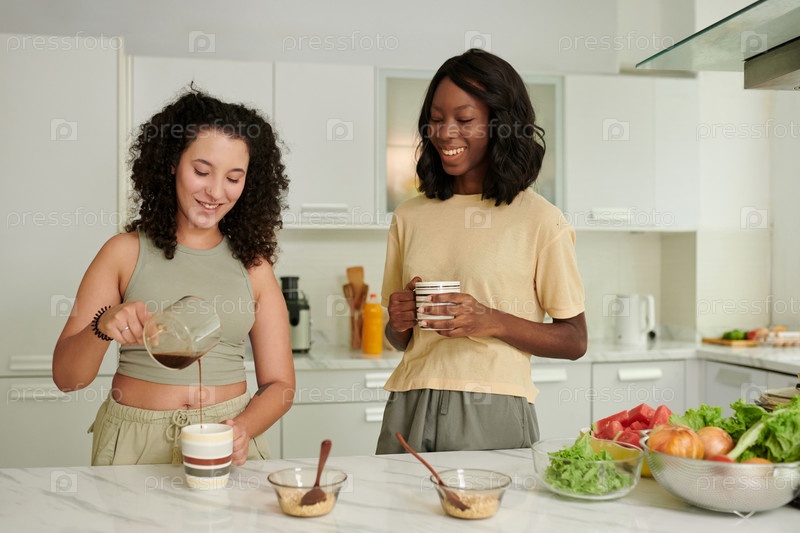 Женщина, наливающая кофе в чашку