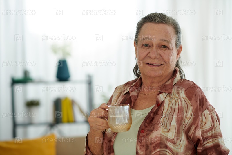Старшая женщина пьет воду