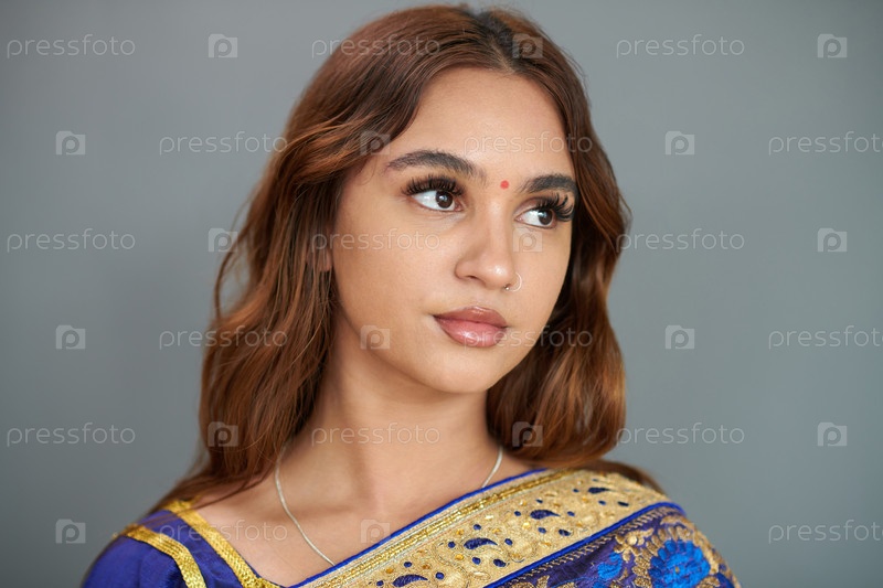 Пенсивная молодая индийская женщина