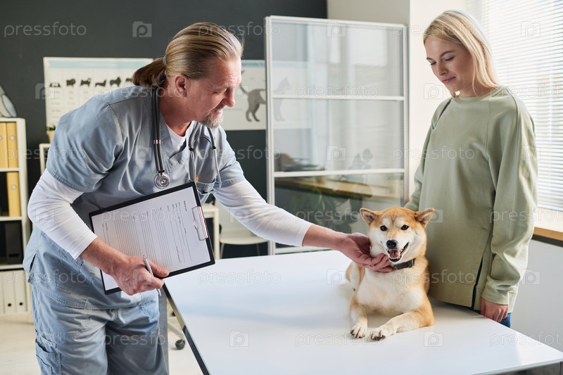 Ветеринар, выражающий доброту к своей собаке-пациенте