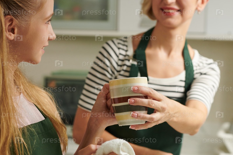 Мать и дочь моют посуду