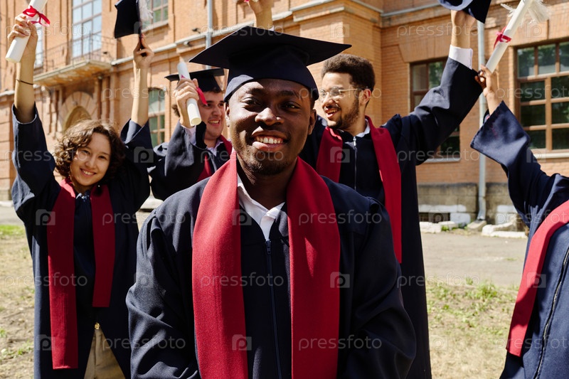 Счастливая студентка в выпускном халате