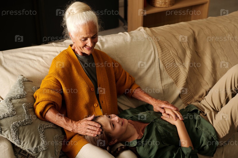 Счастливая девочка с хвостиками наслаждается тем, что проводит время со своей бабушкой