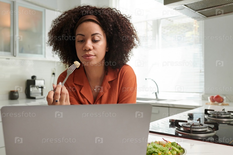 Деловая женщина ест и проверяет электронную почту