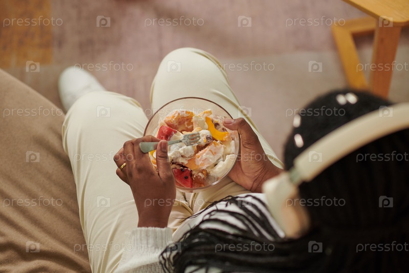 Беременная женщина ест салат