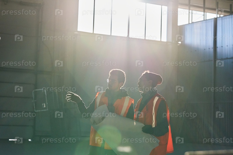 Солнечные очертания двух молодых межкультурных инженеров, консультирующих на встрече
