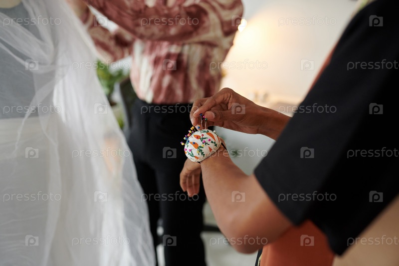 Tailor Taking Pins from Wrist Cushion (Секретарь, берущий штифты с подушки запястья)
