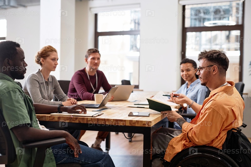 Мужчина с инвалидностью встречается со своими коллегами