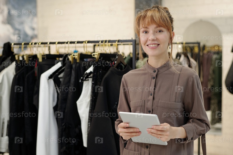 Счастливая молодая блондинка-магазинщик и владелец бутика