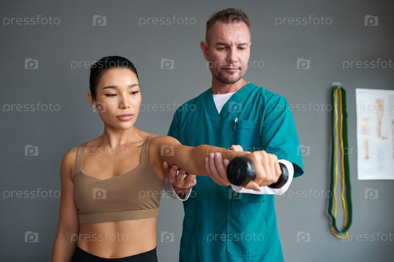 Реабилитационная медсестра помогает спортсменке