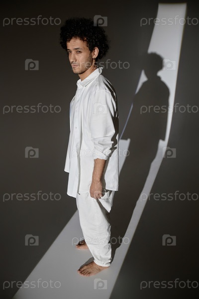 Человек, стоящий в полосе света уверенно смотрящий на расстояние