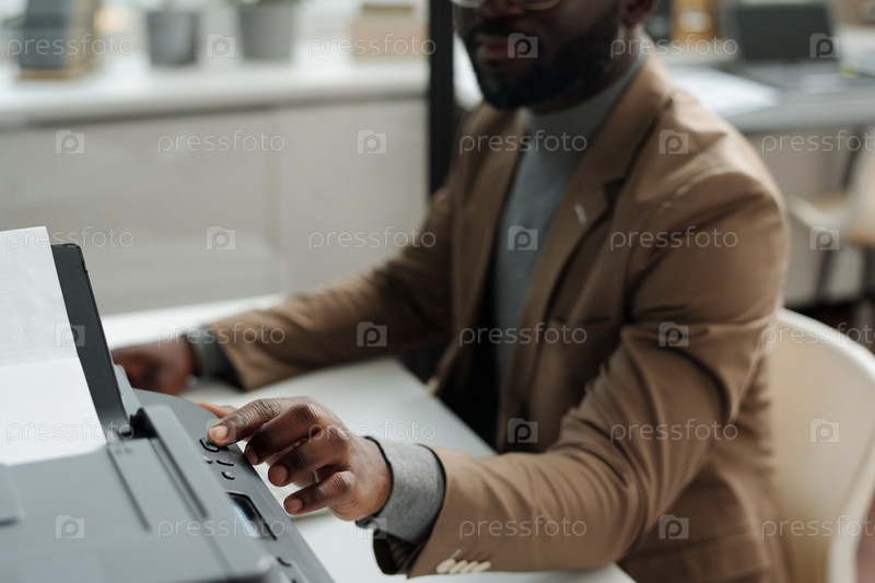 Фокус на руке афроамериканского менеджера-мужчины, нажимающего кнопку старта