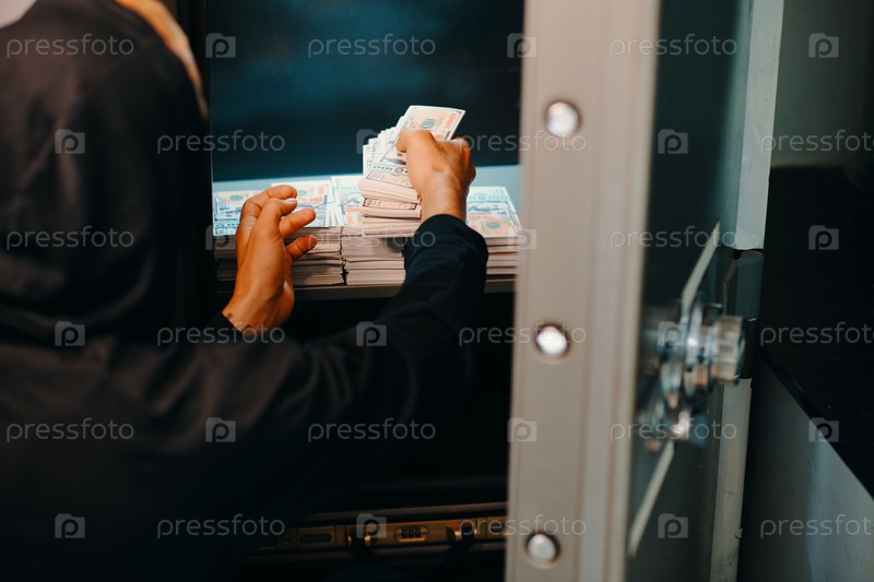 Преступник кладет украденные деньги в сейф