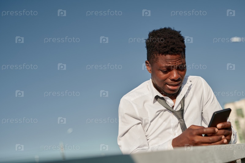 Мужчина читает шокированное сообщение на своем смартфоне