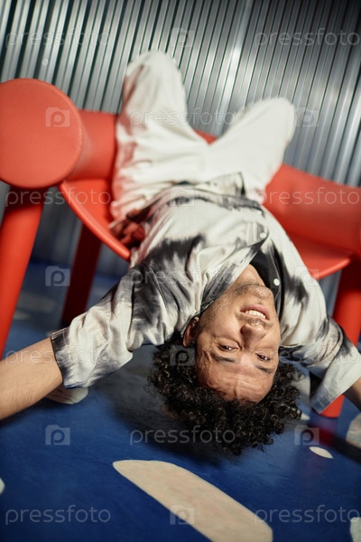Забавный парень, сидящий напротив в кресле