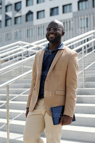 Молодой успешный афроамериканский солопреньер в тихом роскошном наряде