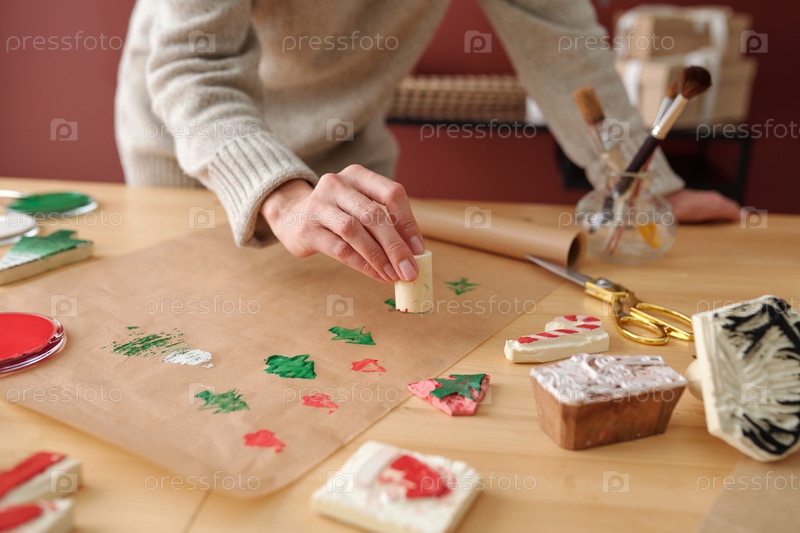 Рука молодой женщины, делающей отпечатки