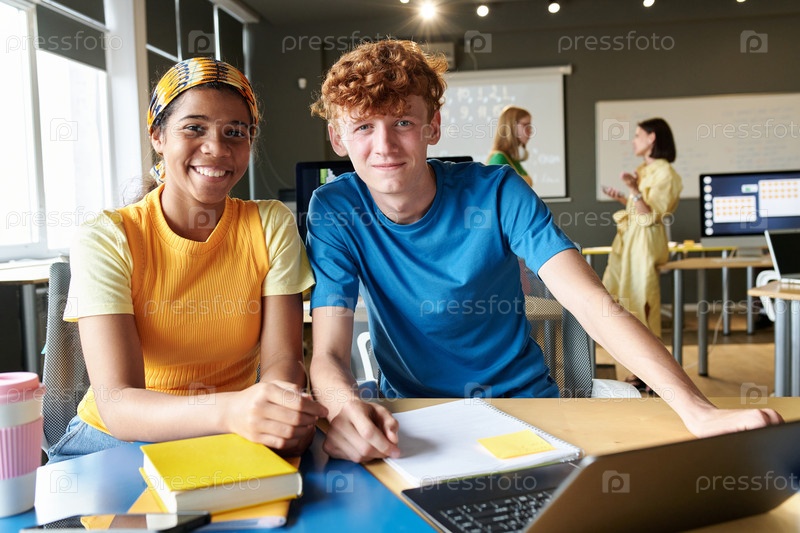 Студенты, работающие в команде на уроке ИТ