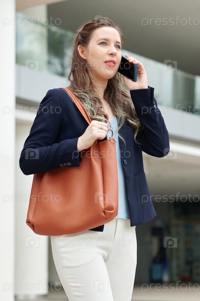 Уверенная в себе деловая женщина, разговаривающая по телефону