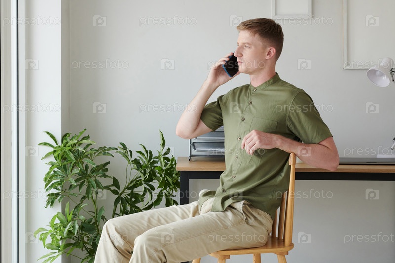 Мужчина разговаривает по телефону с коллегой