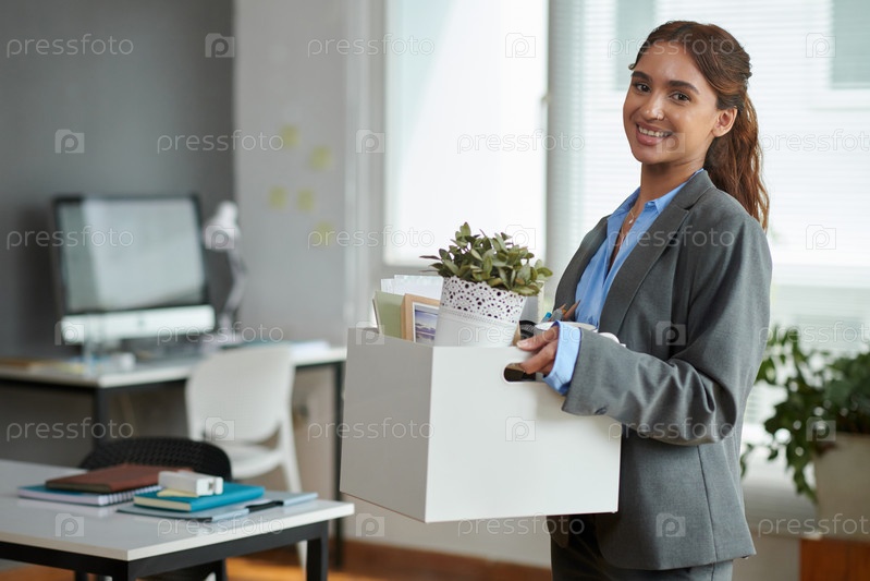 Деловая женщина приносит принадлежности в офис