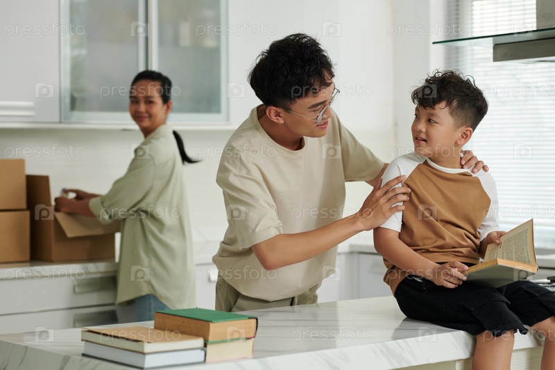 Отец поддерживает своего юного сына