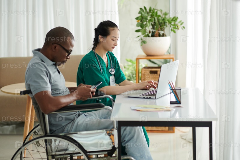 Пациент с инвалидностью пишет сообщения друзьям