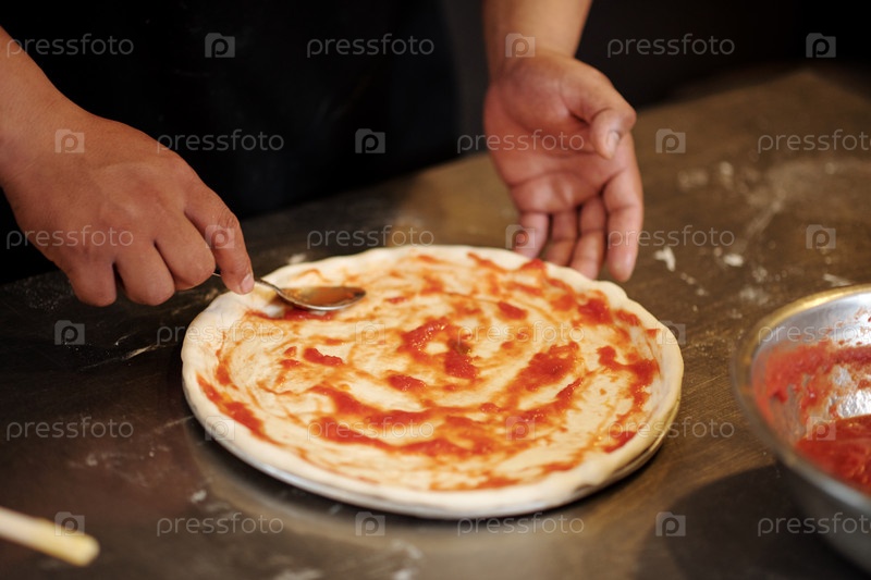 Пиццамейкер, распространяющий соус на пиццу