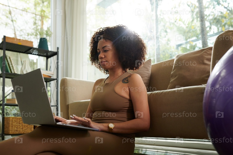 Пенсивная женщина, работающая на ноутбуке