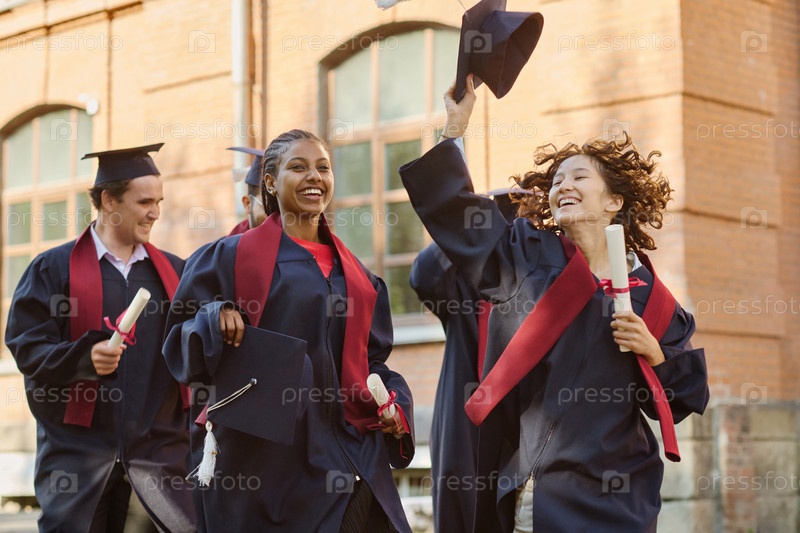 Студенты-выпускники бегут по кампусу