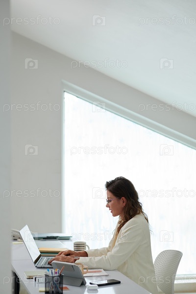 Женщина-предприниматель, работающая на ноутбуке