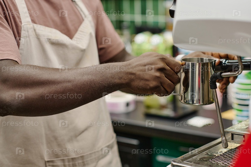 Бариста делает кофе в кафетерии