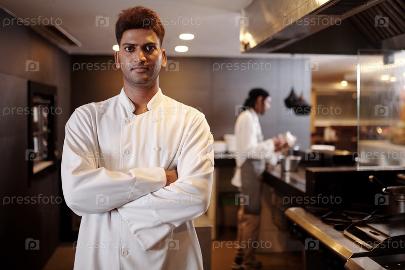 Уверенный шеф-повар ресторана в белой форме
